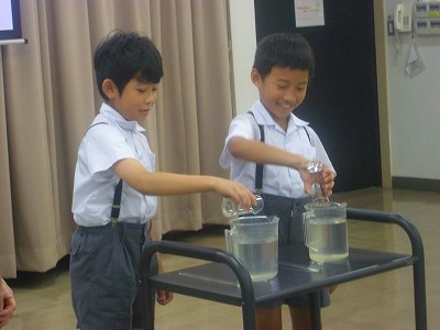 学校にある冷水機からのような冷たい水ではなかったのですが、「学校で飲む水よりおいしい!」との声がちらほら…