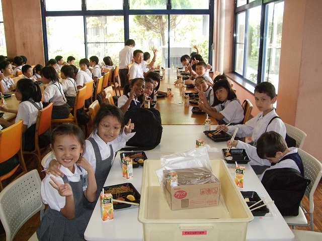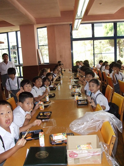 24日、秋晴れの中、小学校は中高の学園祭を訪れました。