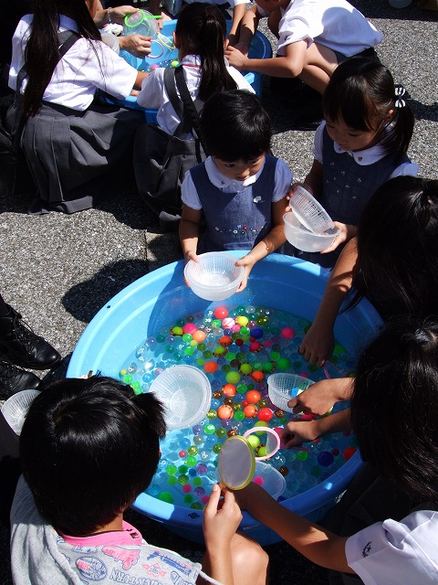 縁日では、魚釣りやストラックアウトを夢中で楽しむ姿がみられました。バザーでは、安く売られているお菓子やおもちゃを「お買い得だー!」と言いながら買う子どもの姿がありました。大幅な値引きをしてもらって、みんな満足気でした。