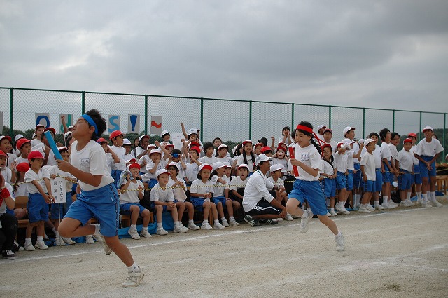 午後の部では、クライマックスに向けて、低学年によるパラバルーンと高学年による組体操の両演技で、グラウンドの雰囲気が一段と盛り上がりました。そして、最終種目の選抜リレーでは、追いつき追い抜けのデットヒートが繰り広げられました。1位のアンカーの児童がゴールの瞬間に両手を空に向かって伸ばした光景が印象的でした。歓喜の声がうずまくグラウンドで、熱戦の末、勝利を手にした白組組長へ優勝杯が授与されました。