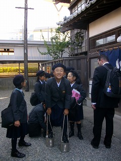 また、子どもたちは、ベーゴマやメンコ、缶ぽっくりなどで無邪気に遊びました。これらの遊びを知らない子どもたちも、やっている子を見ると自然にやりたくなるもので…。夢中になって遊んでいました。