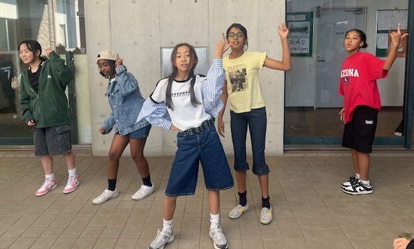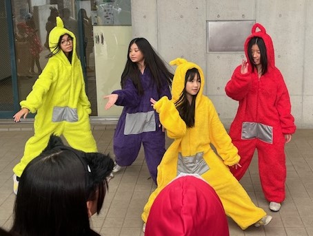 業間休みと昼休みには、ダンスクラブがピロティでダンスを披露してくれました。