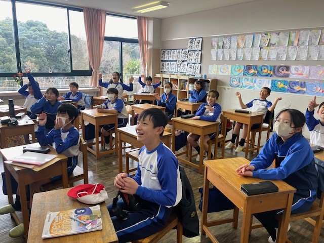 この日は、小学生も各教室で試合を観戦しました。画面に自分たちの校章が映ったり、暁星国際高校とアナウンスされるたびに、子どもたちは「うれしい!」「ドキドキする!」と目を輝かせていました。