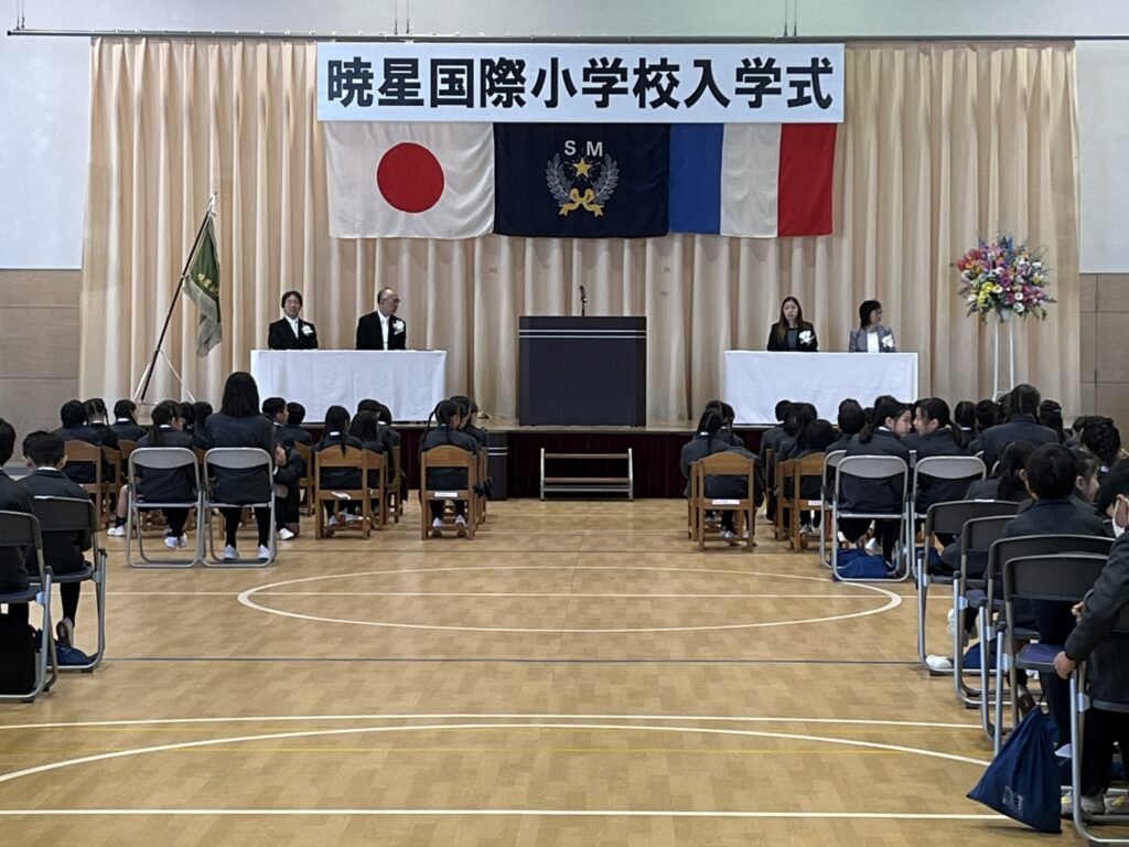 This ceremony was conducted in a celebratory atmosphere, which was attended by first-grade students’ parents, teachers, school staff, and distinguished guests. The program began by the singing of the Japanese and French National Anthems, symbolizing the school community’s rich international character, followed by the introduction of all first grade and transfer students.